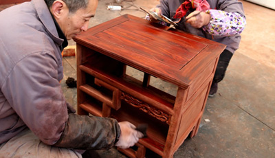 流程三雕刻工序 為了讓紅木家具看上去更美觀,在木工工序完成之后一般都會用一些或簡單或復雜的雕花來進行裝飾,也就是行業中所說的雕刻紋飾。雕刻紋飾必須在“認榫”完成后進行,因為“認榫”時需要修整,如果先做好雕花再開榫,紋理很難保證雕花部件都在同一平面上,而此時為了保證雕花...